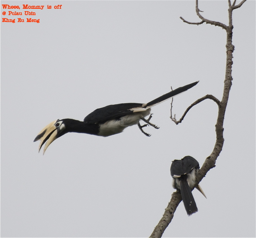 You can't mistake the loud calls of the Oriental Pied Hornbill (below), they are quite noisy but their calls are such a delight to hear. By the way, the hornbill taking off, is the Daddy, not Mommy.